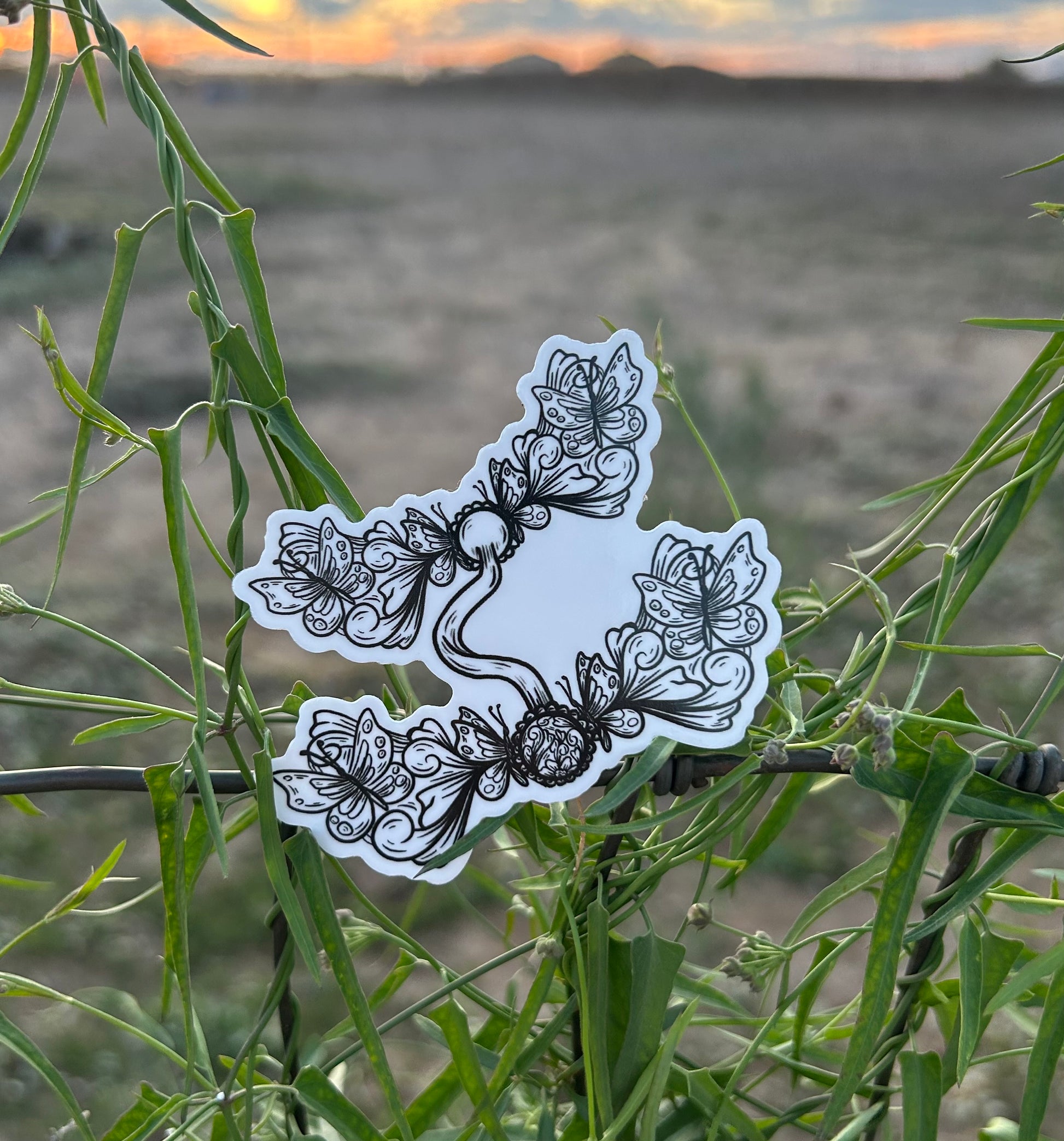 3 inch x 3 inch waterproof vinyl sticker featuring a butterfly engraved port bit.